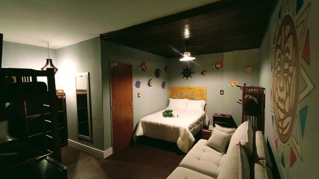 Possui 1 cama de casal e 1 de solteiro, em um ambiente aconchegante, ideal para descansar após um dia de praia e passeios pela ilha.